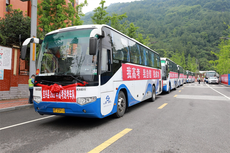 受6月1日蘆山地震影響,寶興縣暫不具備高考條件,天全縣成為寶興縣2022高考平移地點。6月9日下午,蜀通公司調(diào)集13輛大巴車將在天全順利完成高考的寶興考生,安全順利送回寶興。