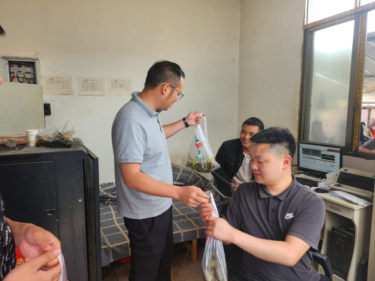 公司食堂內(nèi),歡聲笑語一片!大家通力合作,在廚房阿姨的教學(xué)下包出一個個清香軟糯的愛心粽子,一起品嘗分享,整個活動過程洋溢著祥和歡快的節(jié)日氛圍。為讓堅守在代碑寺項(xiàng)目一線崗位的員工感受到組織的溫暖,隨后,公司總經(jīng)理張忠強(qiáng)帶隊(duì)奔赴代碑寺項(xiàng)目一線崗位,將包好的粽子送到員工手中,并送去節(jié)日的祝福。