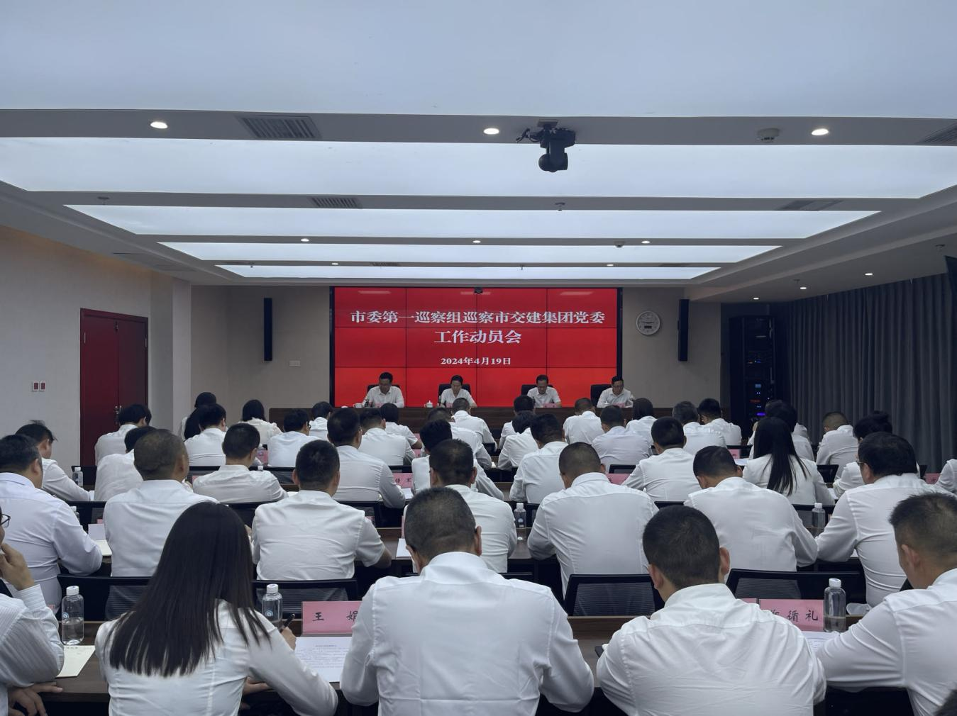 根據市委統一部署,2024年4月19日,市委第一巡察組巡察市交建集團黨委工作動員會召開。會前,巡察組組長陳焱主持召開與市交建集團黨委書記、董事長漆家華的見面溝通會。動員會上,巡察組組長陳焱通報了巡察任務和工作安排,市委巡察工作領導小組成員、市委組織部常務副部長、市委黨建辦主任古黎婭就做好本次巡察工作提出要求。市交建集團黨委書記、董事長漆家華主持會議并作表態(tài)發(fā)言。