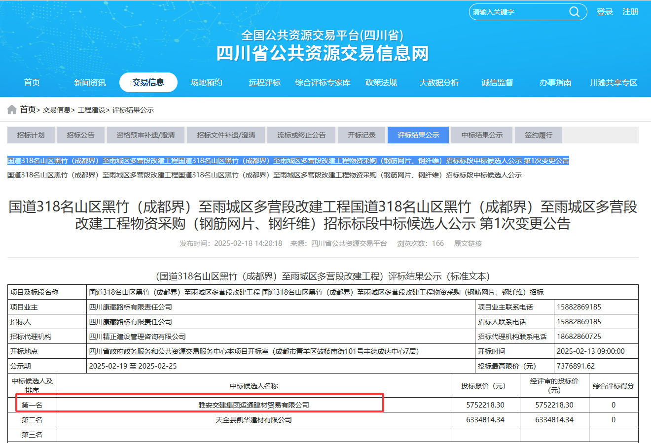 新年伊始,雅安交建集團建材公司憑借過硬實力和平臺企業(yè)優(yōu)勢,在重點基建項目招標(biāo)中連獲突破,成功中標(biāo)國道318名山區(qū)黑竹(成都界)至雨城區(qū)多營段改建工程兩大核心物資供應(yīng),合同總額突破2100萬元,為2025年度經(jīng)營目標(biāo)達(dá)成奠定堅實基礎(chǔ)。