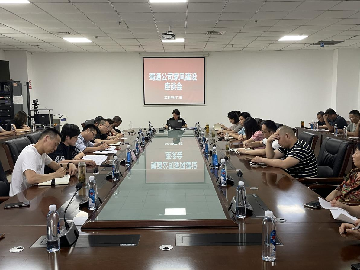 為鞏固提升“雅廉細(xì)胞”示范單位成色,6月13日蜀通公司召開2024年度家風(fēng)建設(shè)座談會,引導(dǎo)和激勵領(lǐng)導(dǎo)干部家屬把家風(fēng)建設(shè)擺在首要位置,廉潔修身、廉潔齊家,以優(yōu)良家風(fēng)涵養(yǎng)廉政作風(fēng)。蜀通公司經(jīng)營班子成員、中層干部公司部分重點(diǎn)崗位人員及家屬參加會議。
