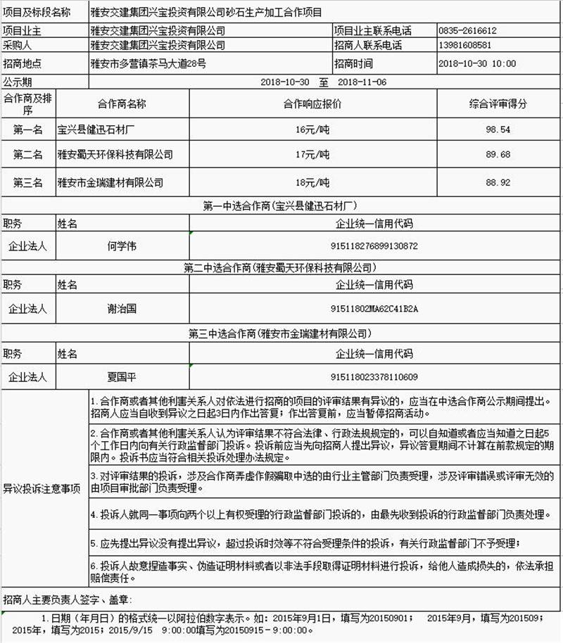 雅安交建集團(tuán)興寶投資有限公司砂石生產(chǎn)加工合作項(xiàng)目公示