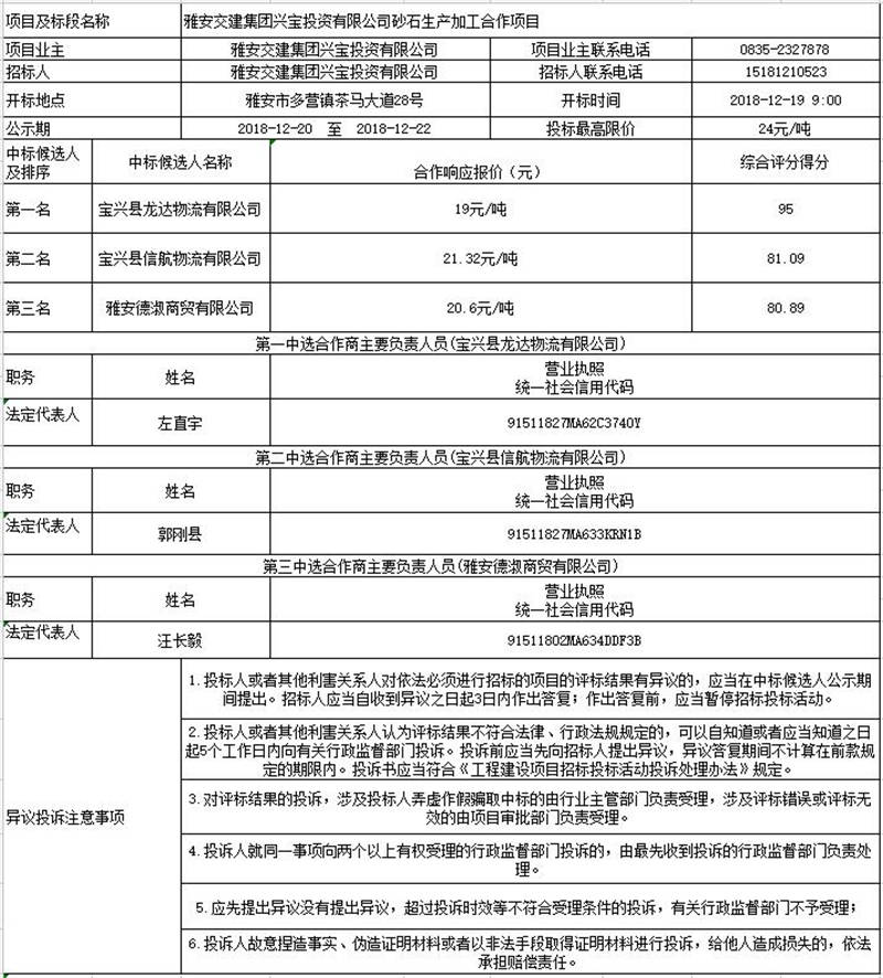 雅安交建集團興寶投資有限公司砂石生產加工合作項目征集合作方公示