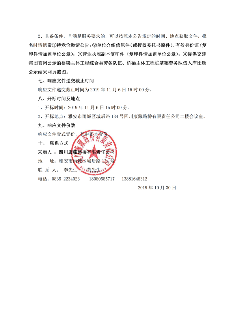 四川康藏路橋有限責任公司省道104線草壩至姚橋段改建工程項目橋梁樁基礎施工勞務競價公告
