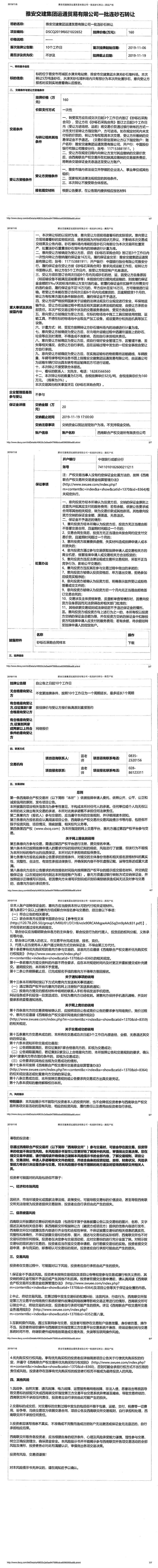 雅安交建集團運通貿(mào)易有限公司一批連砂石轉(zhuǎn)讓掛牌公告