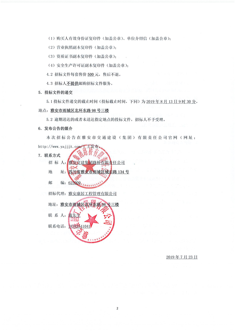 雅安交建集團路橋有限責任公司國道351線磽磧至夾金山段路面改造工程波形護欄采購招標公告