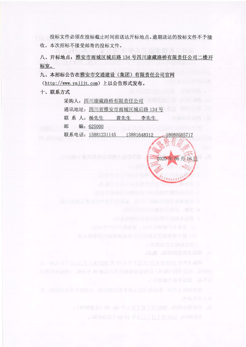 四川康藏路橋有限責任公司寶興分公司省道432線雅安段擴建工程K19新建拌合站施工勞務(wù)磋商公告(第二次)