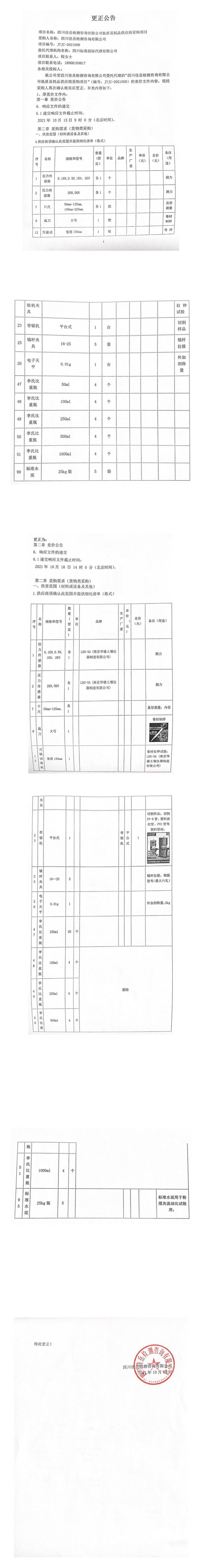 四川佳岳檢測咨詢有限公司低質(zhì)易耗品供應(yīng)商采購項目更正公告