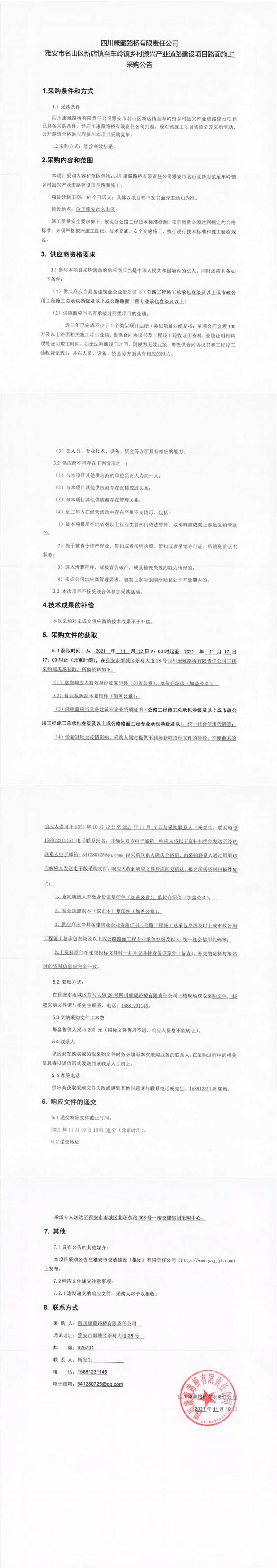 四川康藏路橋有限責任公司雅安市名山區(qū)新店鎮(zhèn)至車嶺鎮(zhèn)鄉(xiāng)村振興產(chǎn)業(yè)道路建設(shè)項目路面施工采購公告