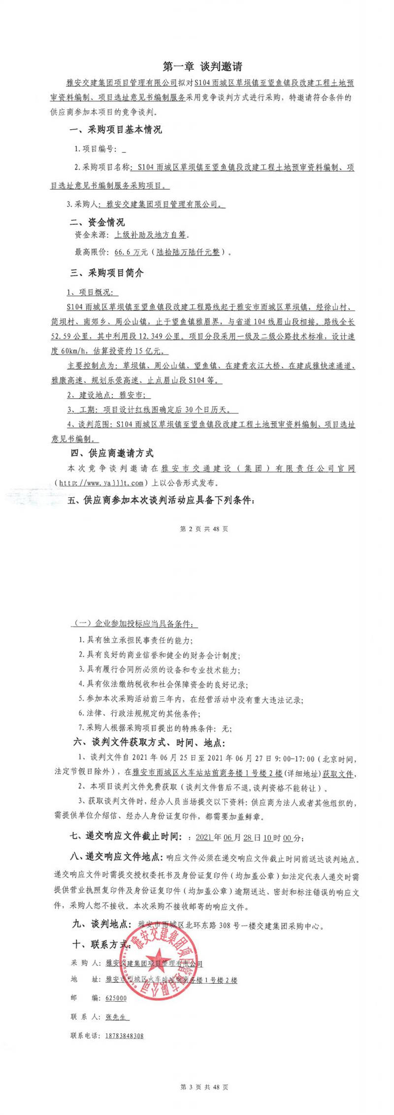 雅安交建集團(tuán)項目管理有限公司S104雨城區(qū)草壩鎮(zhèn)至望魚鎮(zhèn)段改建工程行洪論證與河勢穩(wěn)定評價報告編制服務(wù)采購項目競爭談判公告
