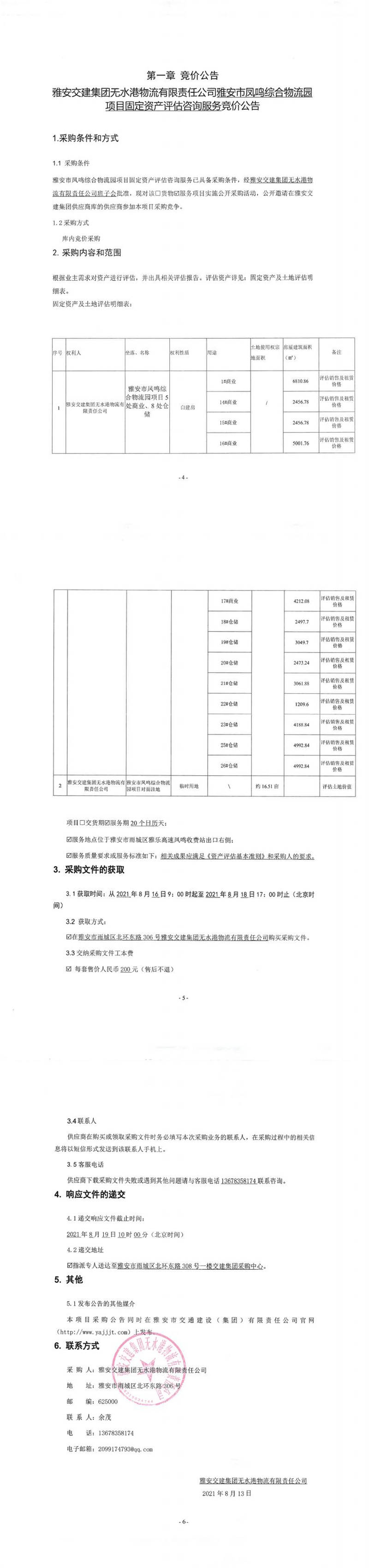 雅安交建集團無水港物流有限責(zé)任公司雅安市鳳鳴綜合物流園項目固定資產(chǎn)評估咨詢服務(wù)競價公告