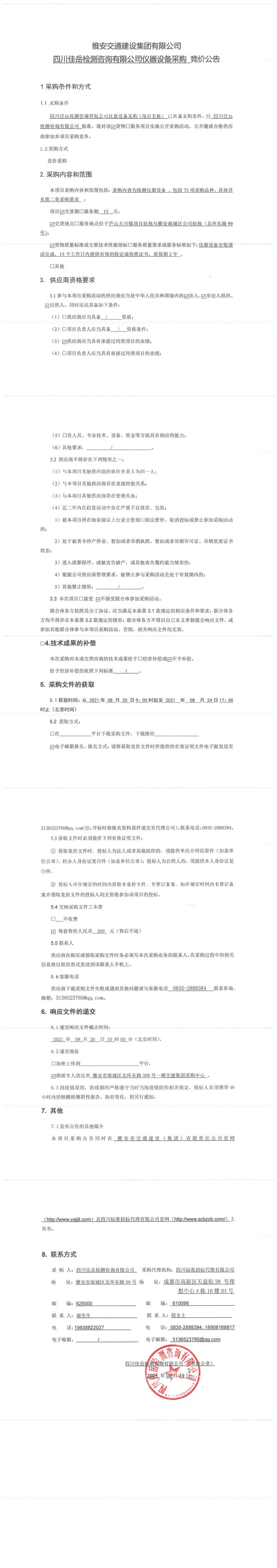 雅安交通建設(shè)集團(tuán)有限公司四川佳岳檢測(cè)咨詢(xún)有限公司儀器設(shè)備采購(gòu)競(jìng)價(jià)公告