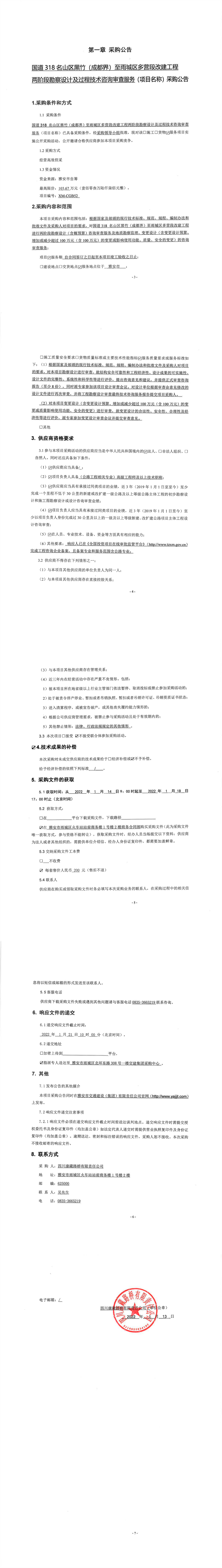 四川康藏路橋有限責(zé)任公司國(guó)道318名山區(qū)黑竹(成都界)至雨城區(qū)多營(yíng)段改建工程兩階段勘察設(shè)計(jì)及過(guò)程技術(shù)咨詢審查服務(wù)采購(gòu)公告