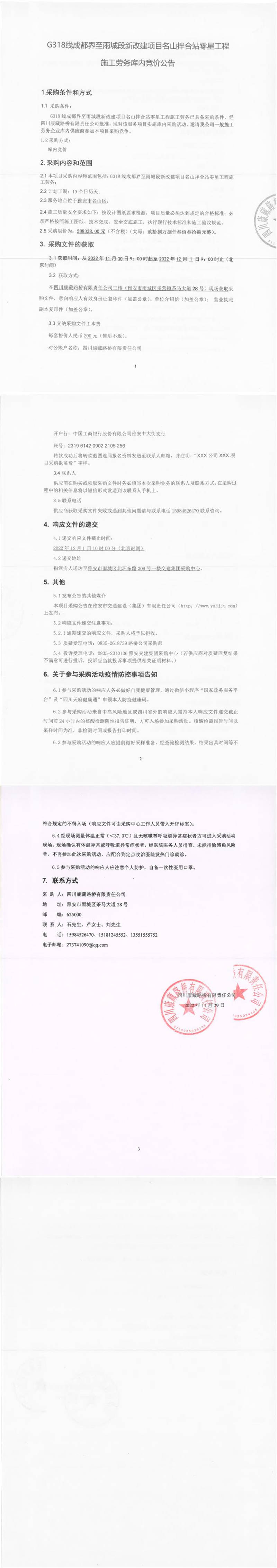 四川康藏路橋有限責任公司G318線成都界至雨城段新改建項目名山拌合站零星工程施工勞務(wù)庫內(nèi)競價公告