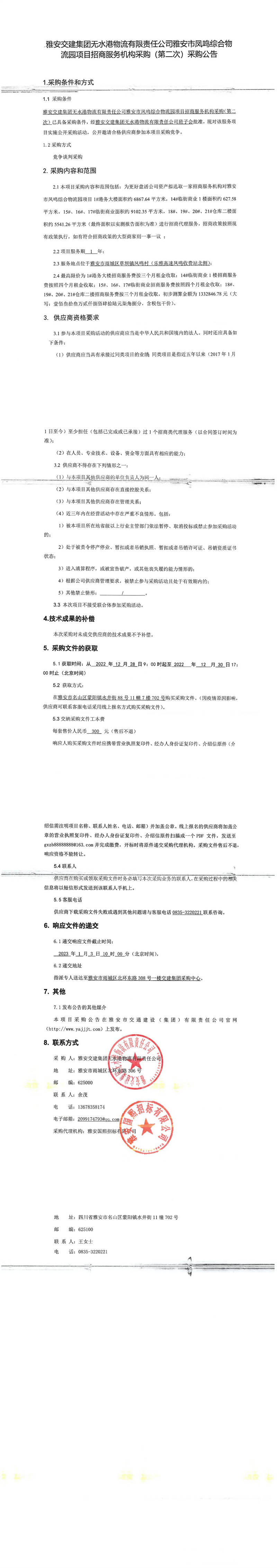 雅安交建集團(tuán)無水港物流有限責(zé)任公司雅安市鳳鳴綜合物流園項(xiàng)目招商服務(wù)機(jī)構(gòu)采購(第二次)采購公告