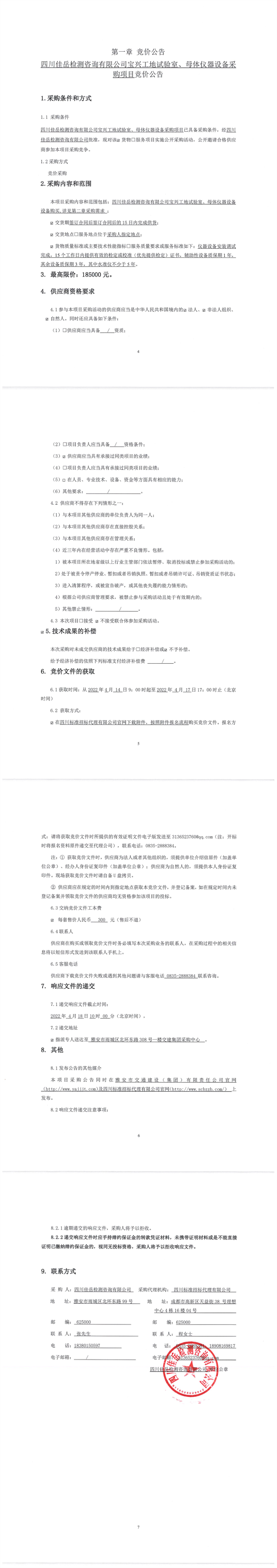 四川佳岳檢測咨詢有限公司寶興工地試驗(yàn)室、母體儀器設(shè)備采購項(xiàng)目競價公告