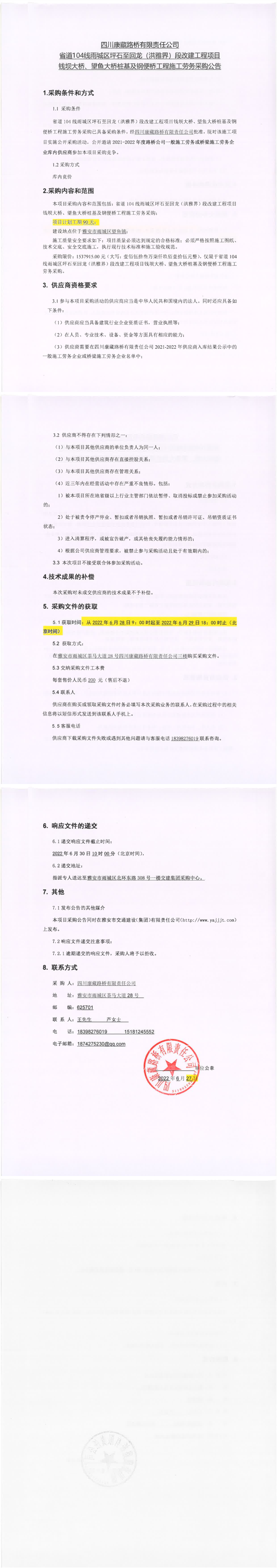 四川康藏路橋有限責任公司G318項目名山河大橋下部工程、皇茶大道天橋項目施工勞務采購(第二次)競爭談判采購結果公示