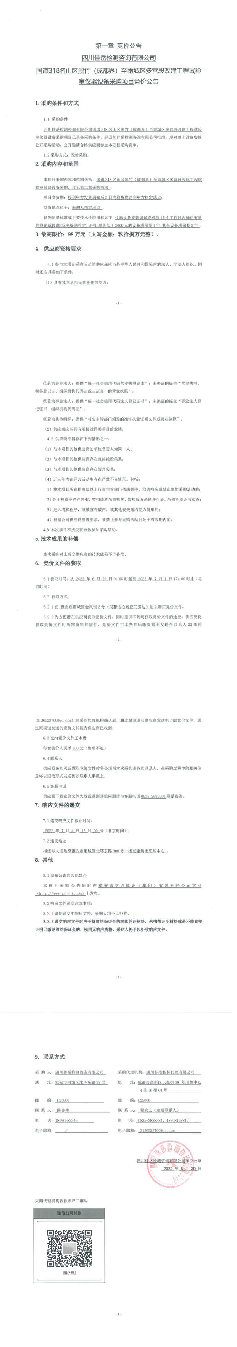 四川佳岳檢測(cè)咨詢有限公司國道318名山區(qū)黑竹(成都界)至雨城區(qū)多營段改建工程試驗(yàn)室儀器設(shè)備采購項(xiàng)目競(jìng)價(jià)公告