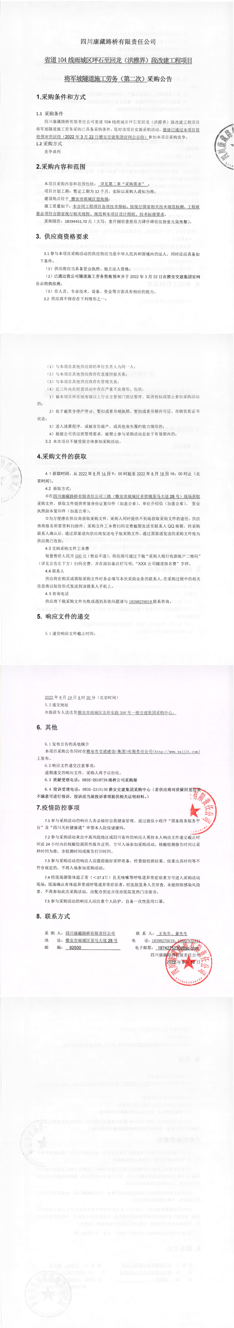 四川康藏路橋有限責(zé)任公司省道104線(xiàn)雨城區(qū)坪石至回龍(洪雅界)段改建工程項(xiàng)目