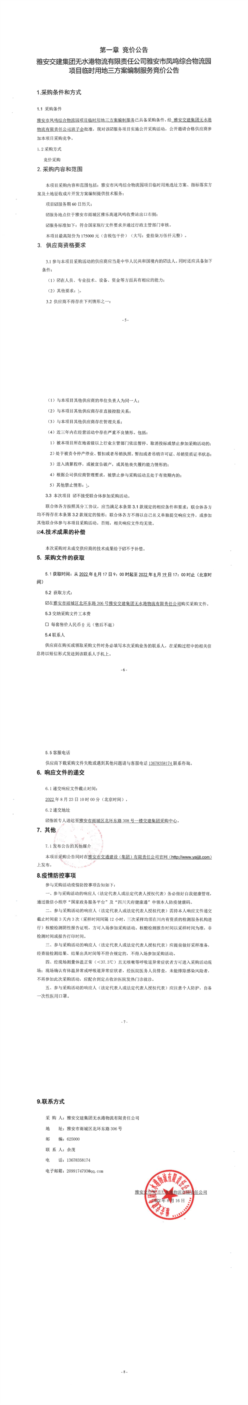 雅安交建集團無水港物流有限責任公司雅安市鳳鳴綜合物流園項目臨時用地三方案編制服務競價公告