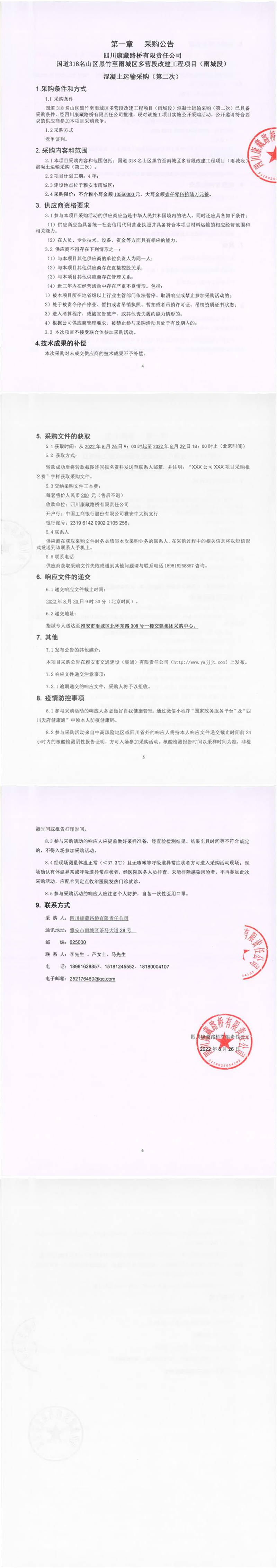 四川康藏路橋有限責(zé)任公司國(guó)道318名山區(qū)黑竹至雨城區(qū)多營(yíng)段改建工程項(xiàng)目(雨城段)混凝土運(yùn)輸(第二次)采購公告