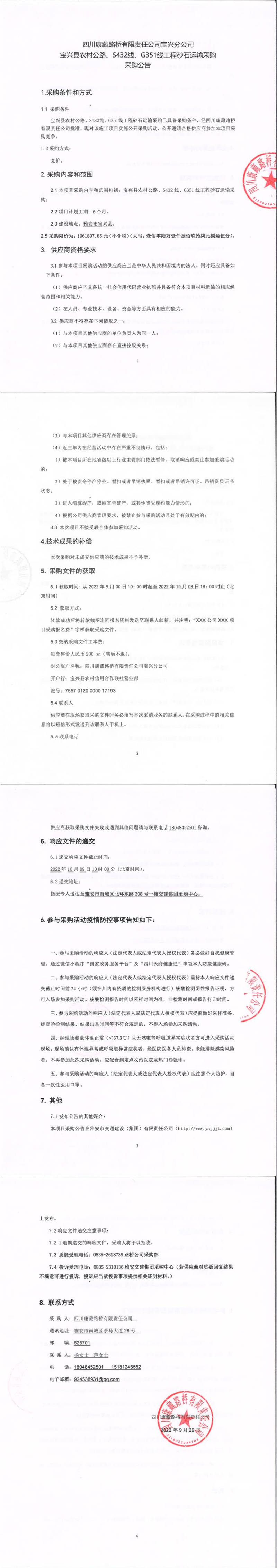 四川康藏路橋有限責任公司寶興分公司寶興縣農(nóng)村公路、S432線、G351線工程砂石運輸采購采購公告