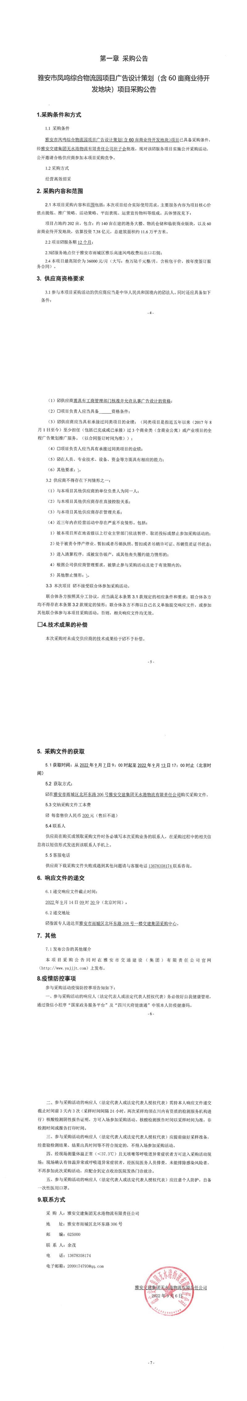 雅安交建集團(tuán)無水港物流有限責(zé)任公司雅安市鳳鳴綜合物流園項(xiàng)目廣告設(shè)計(jì)策劃(含60畝商業(yè)待開發(fā)地塊)項(xiàng)目采購公告