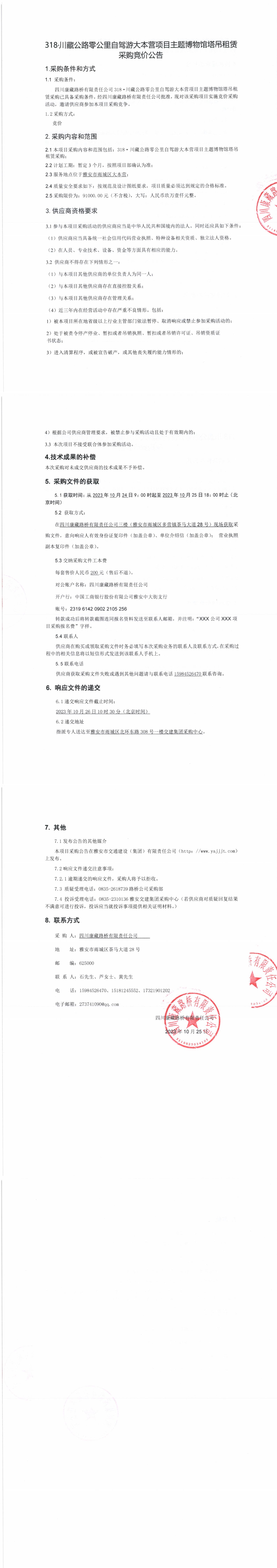 四川康藏路橋有限責(zé)任公司318·川藏公路零公里自駕游大本營(yíng)項(xiàng)目主題博物館塔吊租賃采購(gòu)競(jìng)價(jià)公告