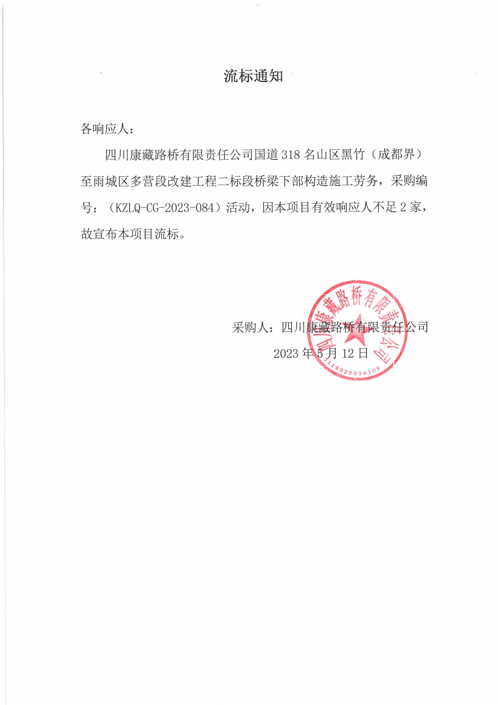 四川康藏路橋有限責任公司國道318名山區(qū)黑竹(成都界)至雨城區(qū)多營段改建工程二標段橋梁下部構(gòu)造施工勞務(wù)流標通知