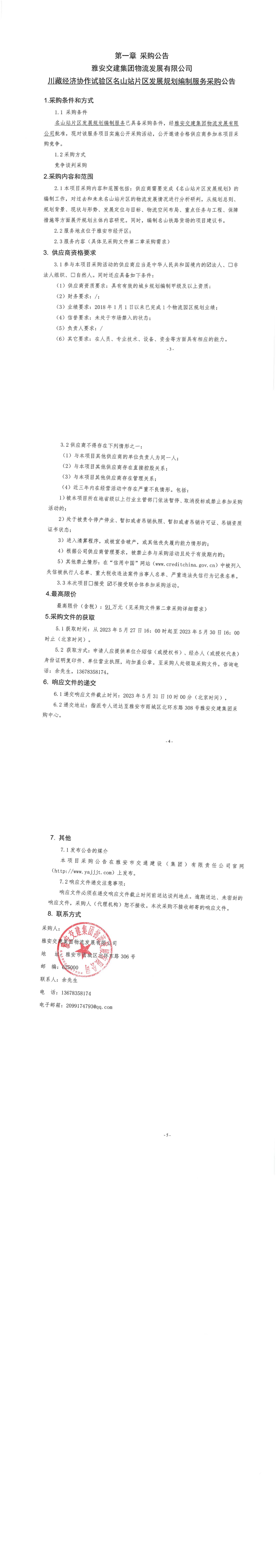雅安交建集團物流發(fā)展有限公司川藏經(jīng)濟協(xié)作試驗區(qū)名山站片區(qū)發(fā)展規(guī)劃編制服務采購公告