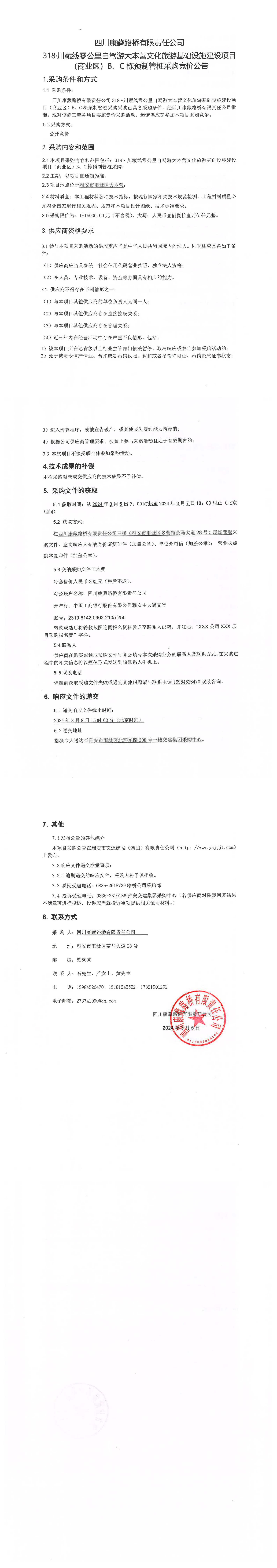 四川康藏路橋有限責(zé)任公司318·川藏公路零公里自駕游大本營文化旅游基礎(chǔ)設(shè)施建設(shè)項目(商業(yè)區(qū))B\C棟樁基施工勞務(wù)競價公告