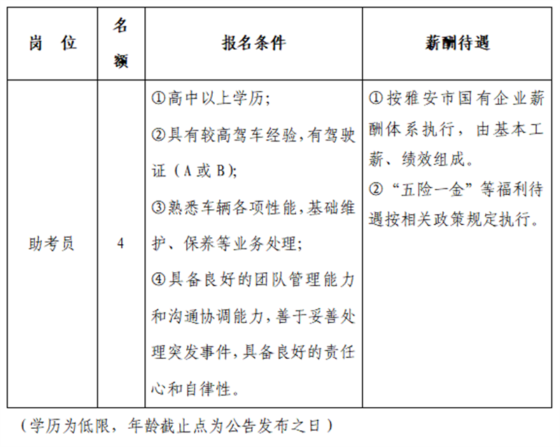 雅安交建集團(tuán)平順檢測(cè)有限公司主要經(jīng)營項(xiàng)目為機(jī)動(dòng)車安全技術(shù)檢驗(yàn)、機(jī)動(dòng)車駕駛員培訓(xùn)(科目二、三適應(yīng)性訓(xùn)練)、機(jī)動(dòng)車環(huán)保定期檢驗(yàn)、汽車綜合性能檢測(cè)等相關(guān)業(yè)務(wù)。因業(yè)務(wù)發(fā)展需要面向社會(huì)招聘人員,特公告如下: