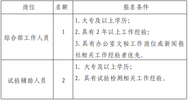 雅安交建集團(tuán)工程檢測(cè)有限公司是雅安市交通建設(shè)(集團(tuán))有限責(zé)任公司下屬子公司。主要從事主要從事公路、橋梁及隧道等的檢測(cè)等業(yè)務(wù)。現(xiàn)根據(jù)公司業(yè)務(wù)發(fā)展需要,擬招聘3名工作人員,現(xiàn)將有關(guān)事項(xiàng)公告如下: