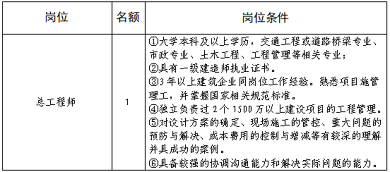 雅安交建集團(tuán)路橋有限責(zé)任公司是雅安市交通建設(shè)(集團(tuán))有限責(zé)任公司下屬子公司,主要從事道路、橋梁修建,F(xiàn)根據(jù)公司業(yè)務(wù)發(fā)展需要,擬向社會公開招聘總工程師1名,工作人員4名,現(xiàn)將有關(guān)事項(xiàng)公告如下: