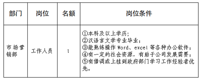根據(jù)發(fā)展需要,決定面向社會公開招聘雅安市交通建設(shè)(集團)有限責(zé)任公司(以下簡稱“雅安交建集團”)所屬子公司工作人員1名,現(xiàn)將有關(guān)事項公告如下: