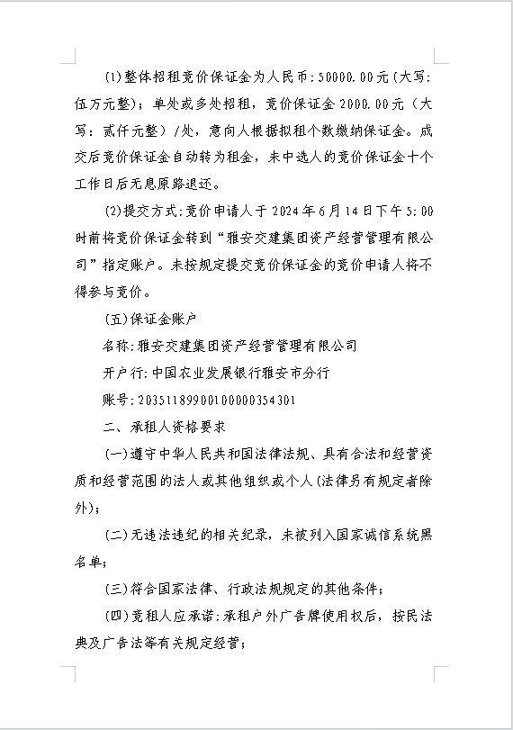 雅安交建集團(tuán)資產(chǎn)經(jīng)營管理有限公司關(guān)于戶外廣告位競價(jià)招租的公告附件