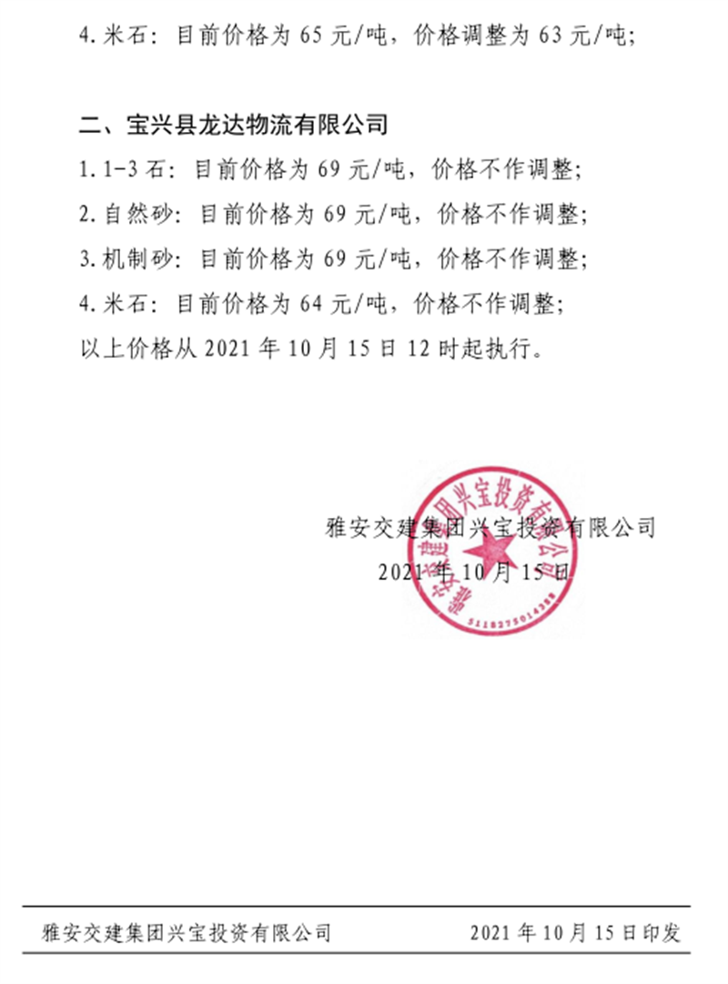 ÑŰ²½»½¨¼¯ˆF(tu¨¢n)ÅdŒš¹«Ë¾êP(gu¨¡n)ÓÚÕ{(di¨¤o)Õû³ÉÆ·ÁÏäNÊÛƒr¸ñµÄ֪ͨ£¨2021.10.15£©