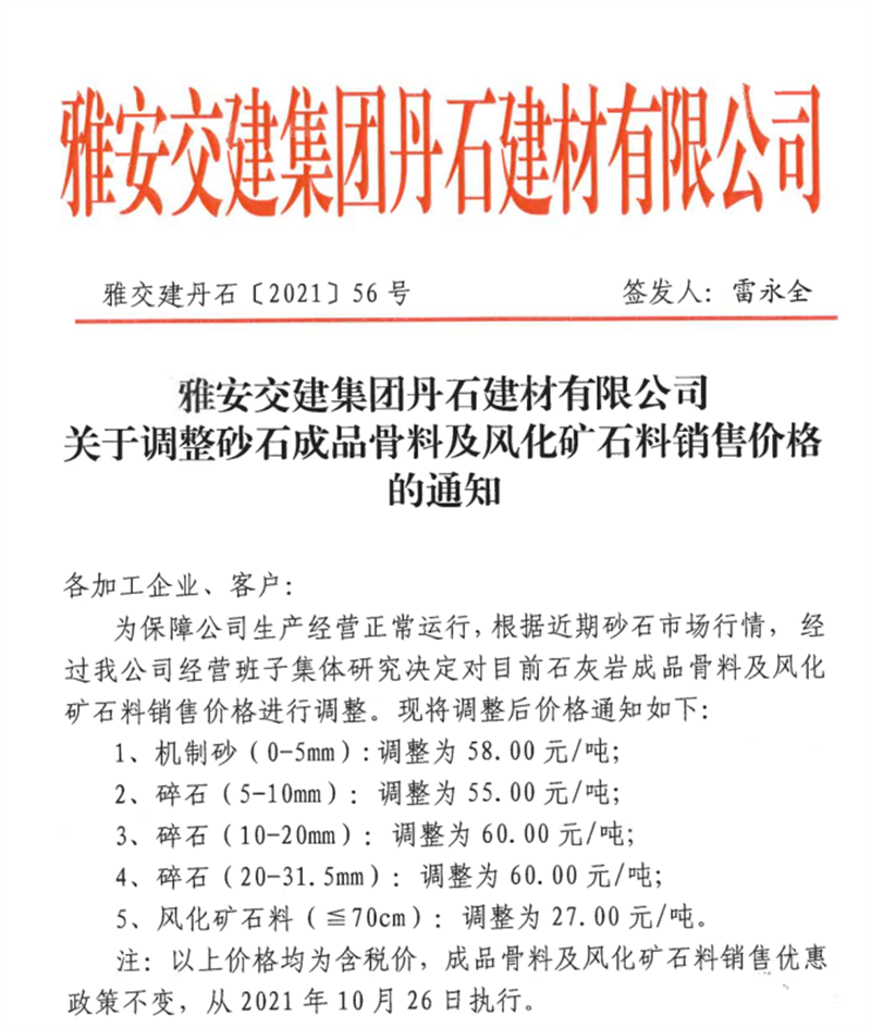 ÑŰ²½»½¨¼¯ˆFµ¤Ê¯¹«Ë¾êP(gu¨¡n)ÓÚÕ{(di¨¤o)Õû³ÉÆ·¹ÇÁϼ°ïL(f¨¥ng)»¯µVʯÁÏäNÊÛƒr¸ñµÄ֪ͨ£¨2021.10.26£©