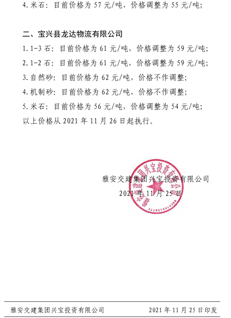 ÑŰ²½»½¨¼¯ˆF(tu¨¢n)ÅdŒš¹«Ë¾êP(gu¨¡n)ÓÚÕ{(di¨¤o)Õû³ÉÆ·ÁÏäNÊÛƒr(ji¨¤)¸ñµÄ֪ͨ£¨2021.11.26£©