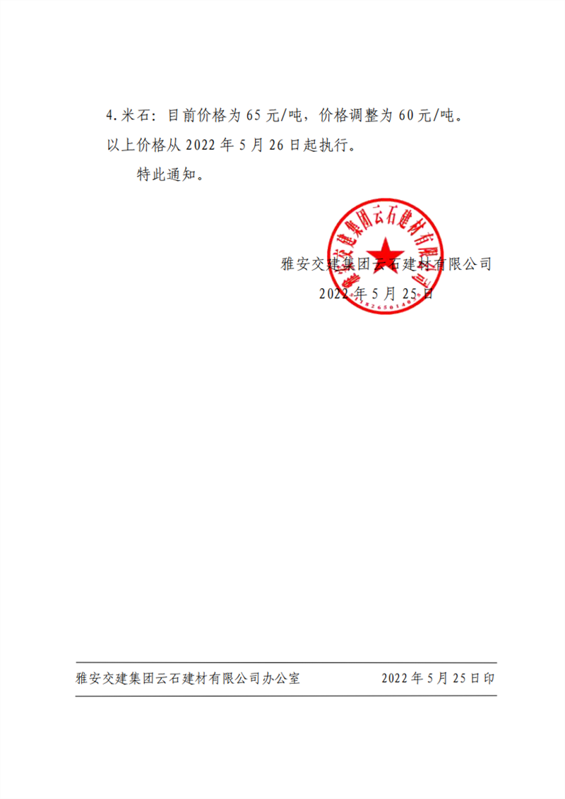 ÑŰ²½»½¨¼¯ˆF(tu¨¢n)ÔÆÊ¯½¨²ÄÓÐÏÞ¹«Ë¾ êP(gu¨¡n)ÓÚÕ{(di¨¤o)Õû³ÉÆ·Áσr(ji¨¤)¸ñµÄ֪ͨ--2022-5-25
